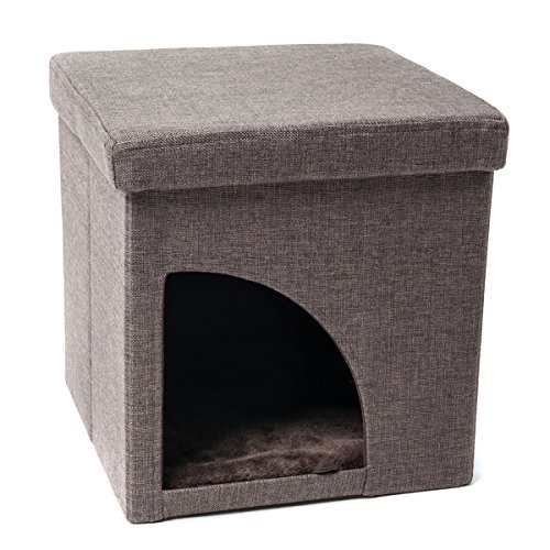 Favorite Soft Portable Opening Cat Play Cube Bed, Brown