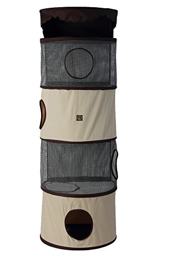 One for Pets 4-Storey All in One Portable Cat Activity Tower, Cream/Brown