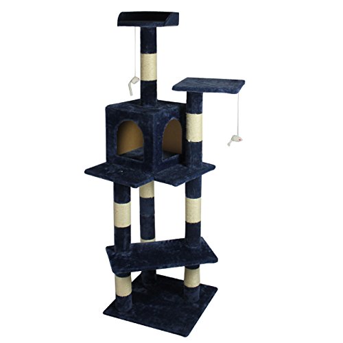 BestPet Cat Tree Condo Furniture Scratch Post Pet House, 60-Inch, Navy Blue
