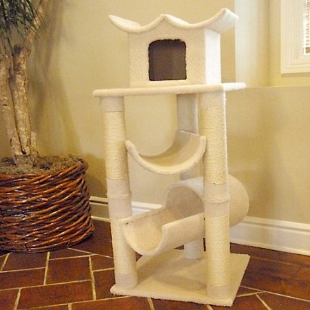 Majestic Pet Products 47 inch Cream Bungalow Cat Furniture Condo House Scratcher Multi Level Pet Activity Tree