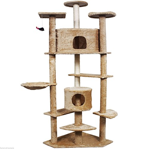 My1stPet Cat Tree Condo with Scratching Post, 80", Beige