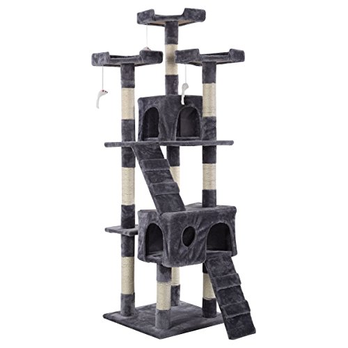 GHP Gray 67" Condo Kitten/Cat Tree Tower Furniture Scratching Post House