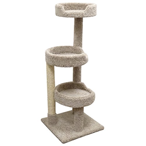 All images of Window Size Kitty Tree Cat Tower with 3 Large Beds, Beige Carpet