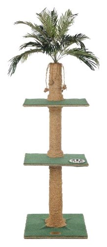 Kitty Palm Cat Tree with Palm Top, Green Carpet, Manila Rope, 2 Platform, 60 Inches