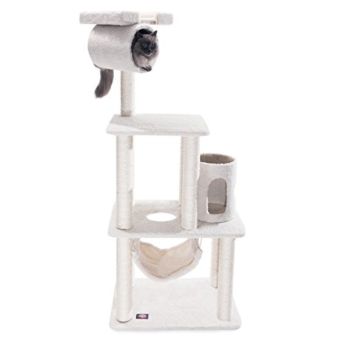 Majestic Pet Products 62 inch Cream Bungalow Cat Furniture Condo House Scratcher Multi Level Pet Activity Tree