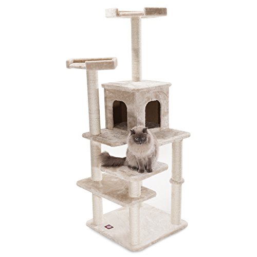 Majestic Pet Products 66 inch Beige Casita Cat Furniture Condo House Scratcher Multi Level Pet Activity Tree