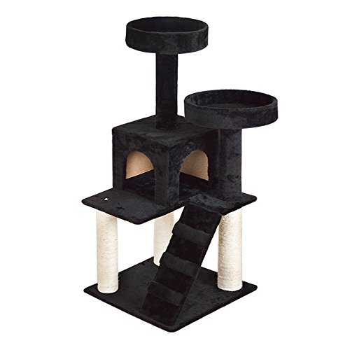 Vidagoods 51" Almond Black Beige Cat Tree Soild Condo Furniture Scratch Post Play House CARB-Certified E0 Classied Wood Particle-board (Black)