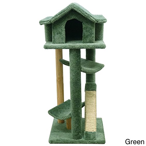 Wood Cat Tower Tree for Large Cats Pagoda House, Green Carpet