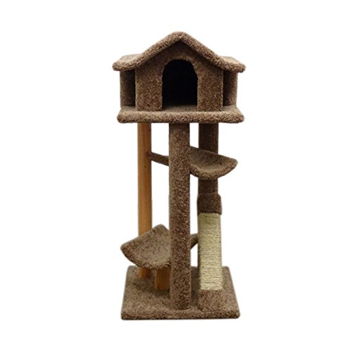 Wood Cat Tree Furnture Pagoda House, Brown Carpet