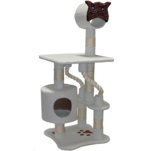 Majestic Pet Products 49 inch Cream Bungalow Cat Furniture Condo House Scratcher Multi Level Pet Activity Tree