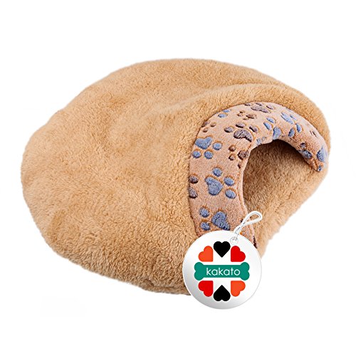 Super Comfortable Winter Warm Pet Dog Cat Bed Kennel House Cave Cushion Half Covered Sleeping Bed Bag Brown S
